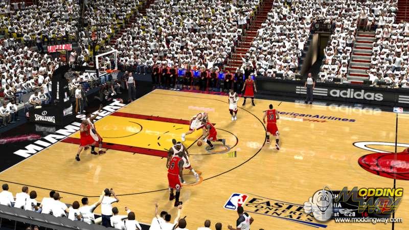 It has a court with real colors and reflections, A stadium with real backboard and sponsors, playoff dornas, and crowdBackboard is already fixed during conference finalsCredit goes to patchers who made the base court and stadiumCredit also goes to Lagoa for his new reflection effect texture