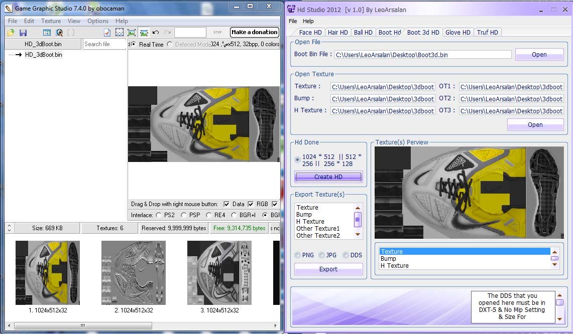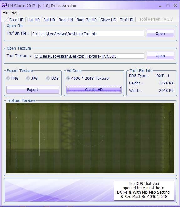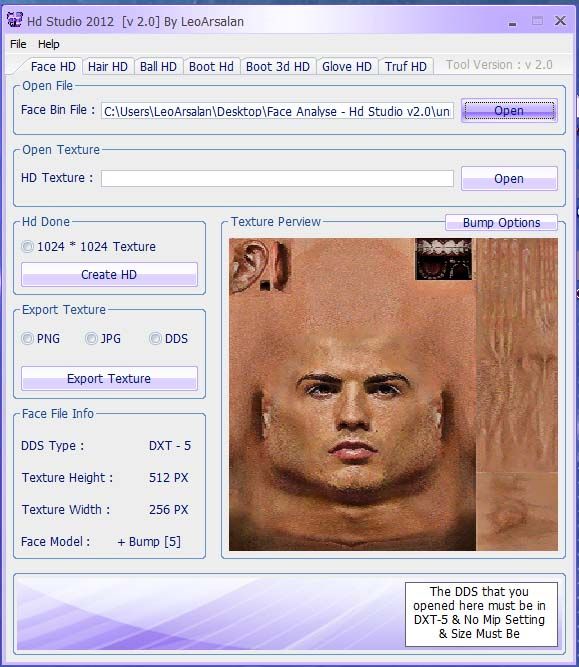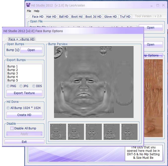 HD Studio v 2.0 By LeoArsalanIn This Version :- V2.0[ New Version For Pes2012 Full Game ]- New features :-- Fix Bug In Hd No Bump Face's-- Add Bump HD Option-- Support 5 Bump Faces-- Disable Bump For Faces[ Note ]Remember For No Bug In Game Have More Attention In Help about DDS Settingat Bottom Of Each Hd Option- V1.0[ New Version For Pes2012 Full Game ]- New features :-- Add Hd 3d Boot Option-- Fix Bug In Truf Hd-- Fix Bug In Face Hd[ Note ]Remember For No Bug In Game Have More Attention In Help about DDS Settingat Bottom Of Each Hd Option----Special Thank's To Mehroo - Mr. Siyamak Tehraniand every thing i foget him :Dhttp://www.winsar.ir