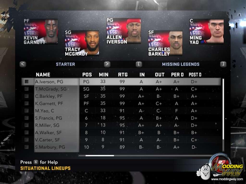 as always credits can be seen at my website......but I'd like to thank these following modders who have been an inspiration to me and without them i'd never get this far......HAWK23 (Classic Teams), MGX (NBA 2K11 Cyberfaces), Alec Zhou (NBA 2K12 tools), and Jemizhuu (NBA 2K mod tool)