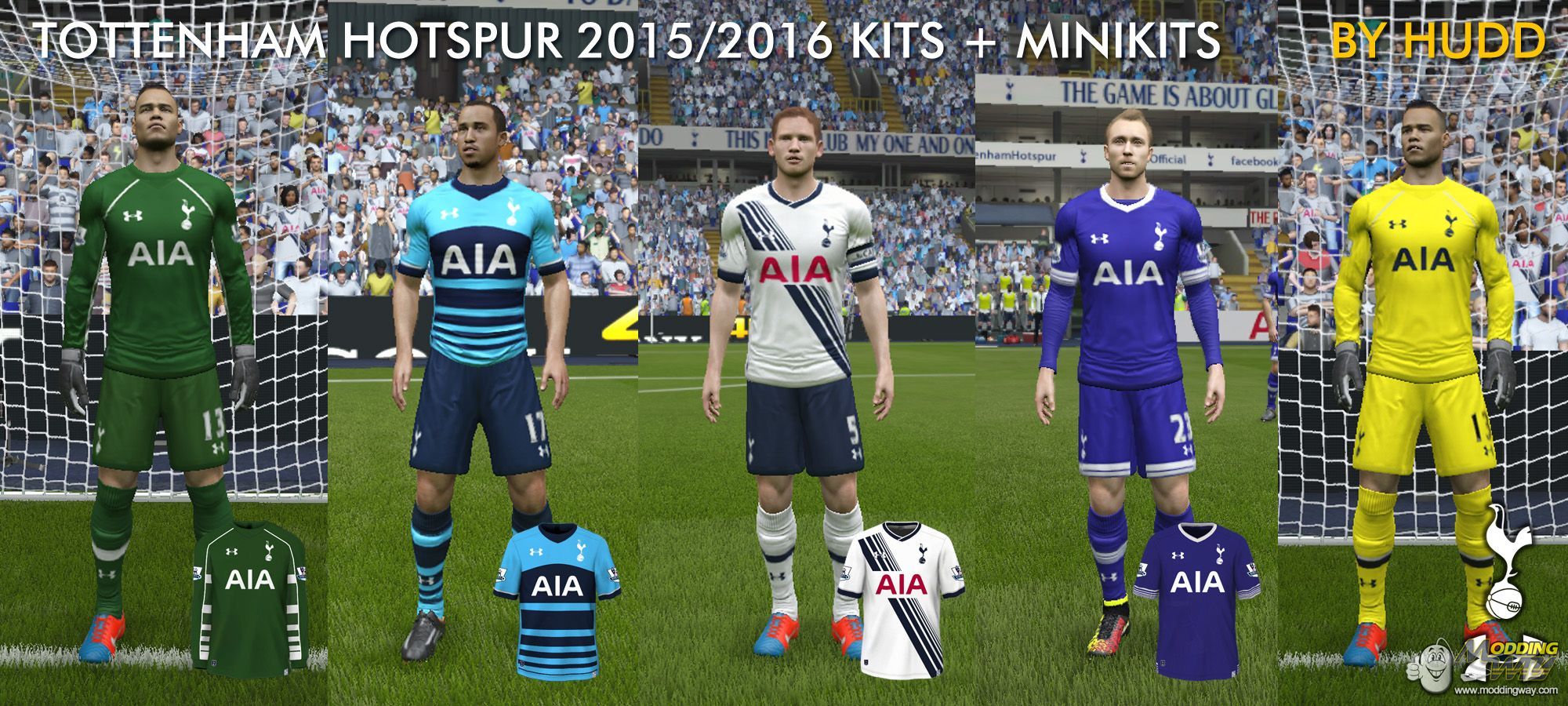 Tottenham Hotspur 15-16 home, away, third, goalkeeper and goalkeeper away kits. Including minikits and blue socks bersion of the home kit.