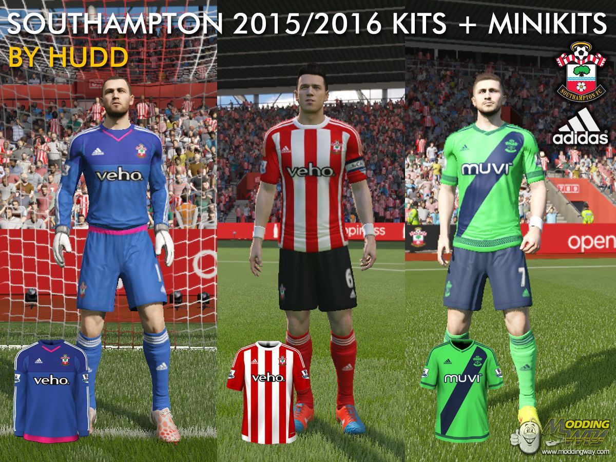Southampton 15-16 home, away and goalkeeper and kits. Including minikits.