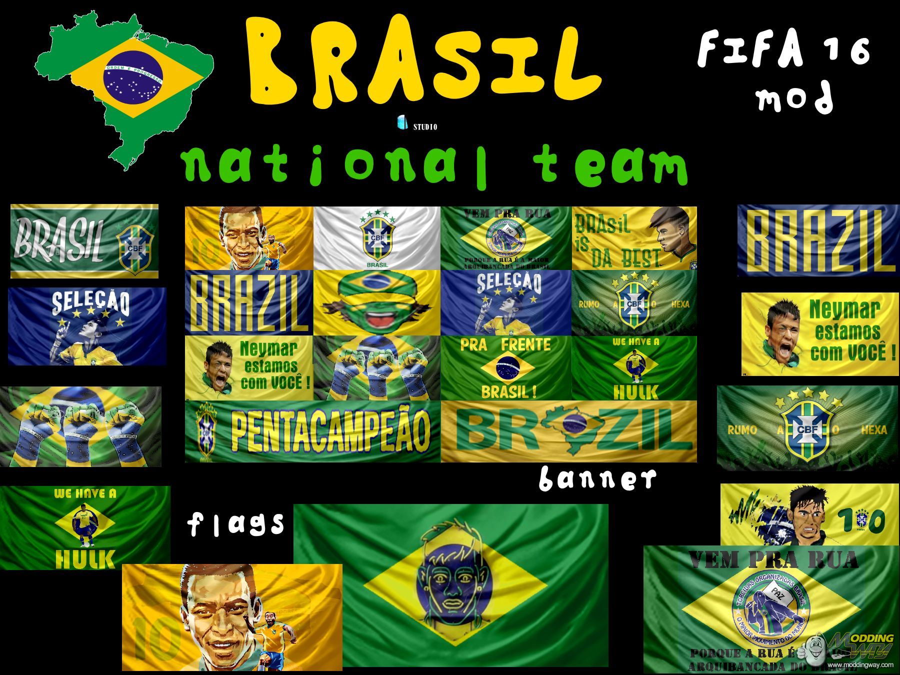 Download Brazil NT 16 banner & flags mod. This is a mod for FIFA 16 video game.