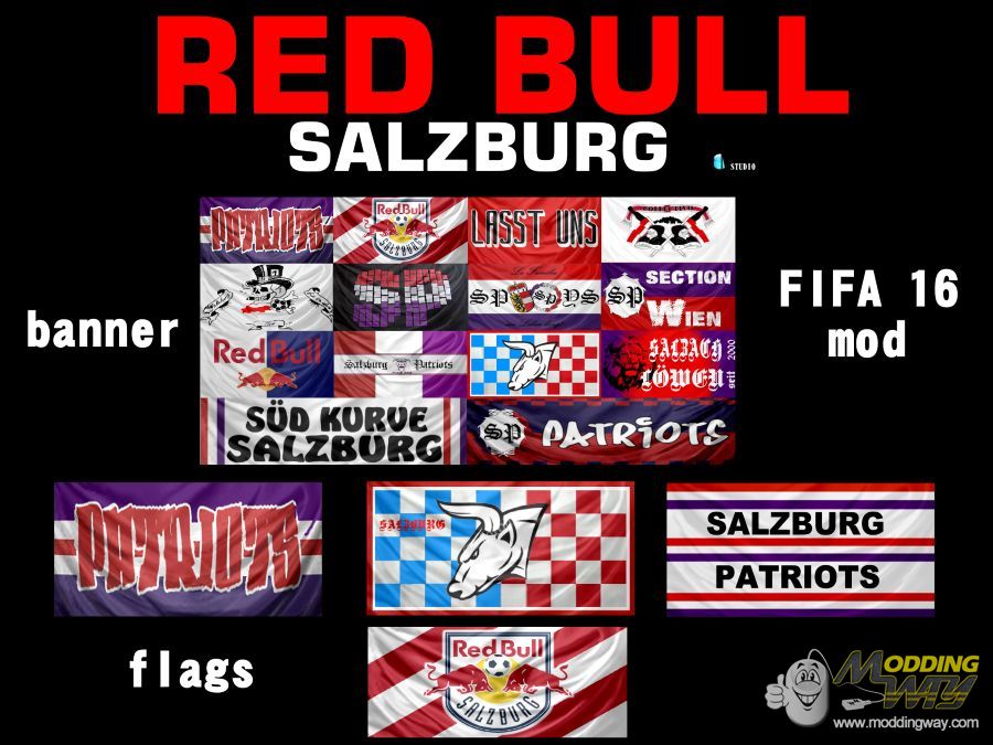Download Red Bull Salzburg 16 banner&flags. This is a mod for FIFA 16 video game.