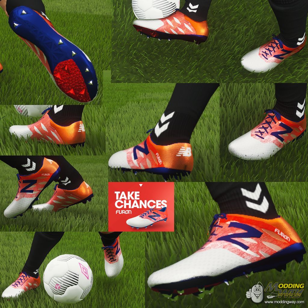 Download New Balance Furon White/Flame/Ocean Blue. This is a mod for FIFA 16 video game.