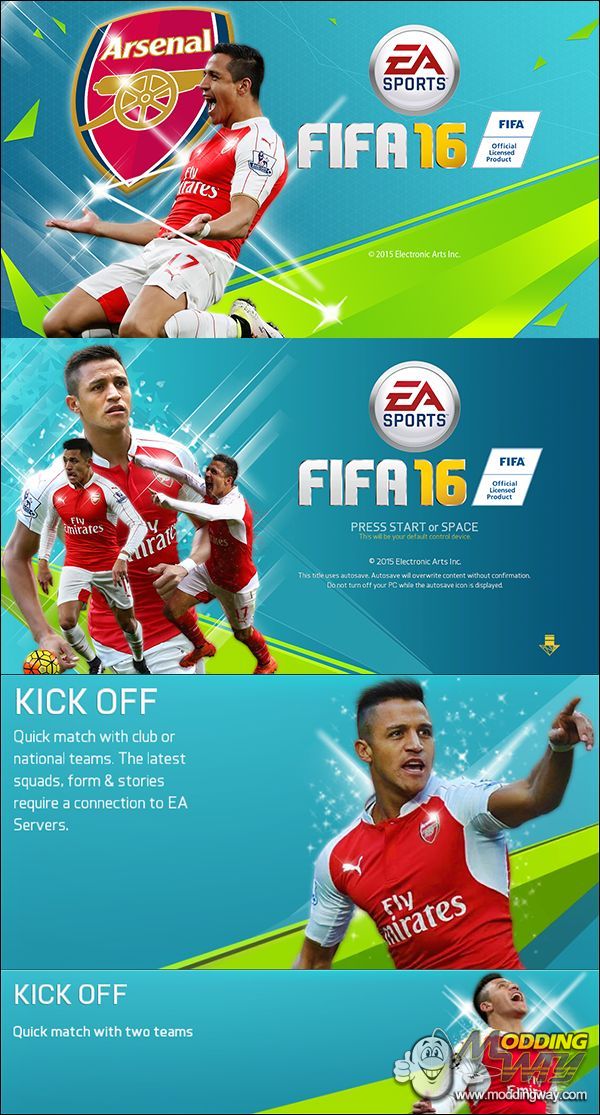 Download Alexis Sánchez...Splash/Press Start Screen & Kick Off Tiles. This is a mod for FIFA 16 video game.