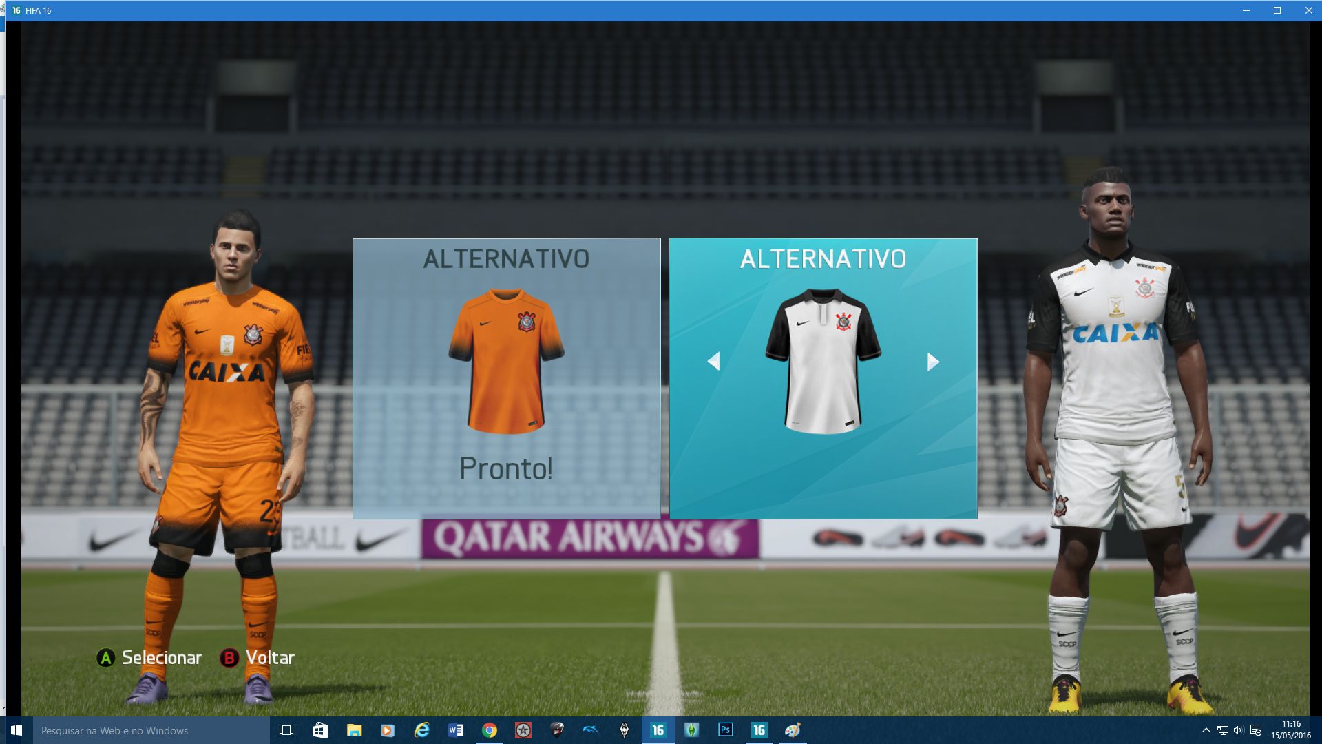 Uniformes do Corinthians 15/16 - Com uniformes alternativos, todos branco e todo preto.