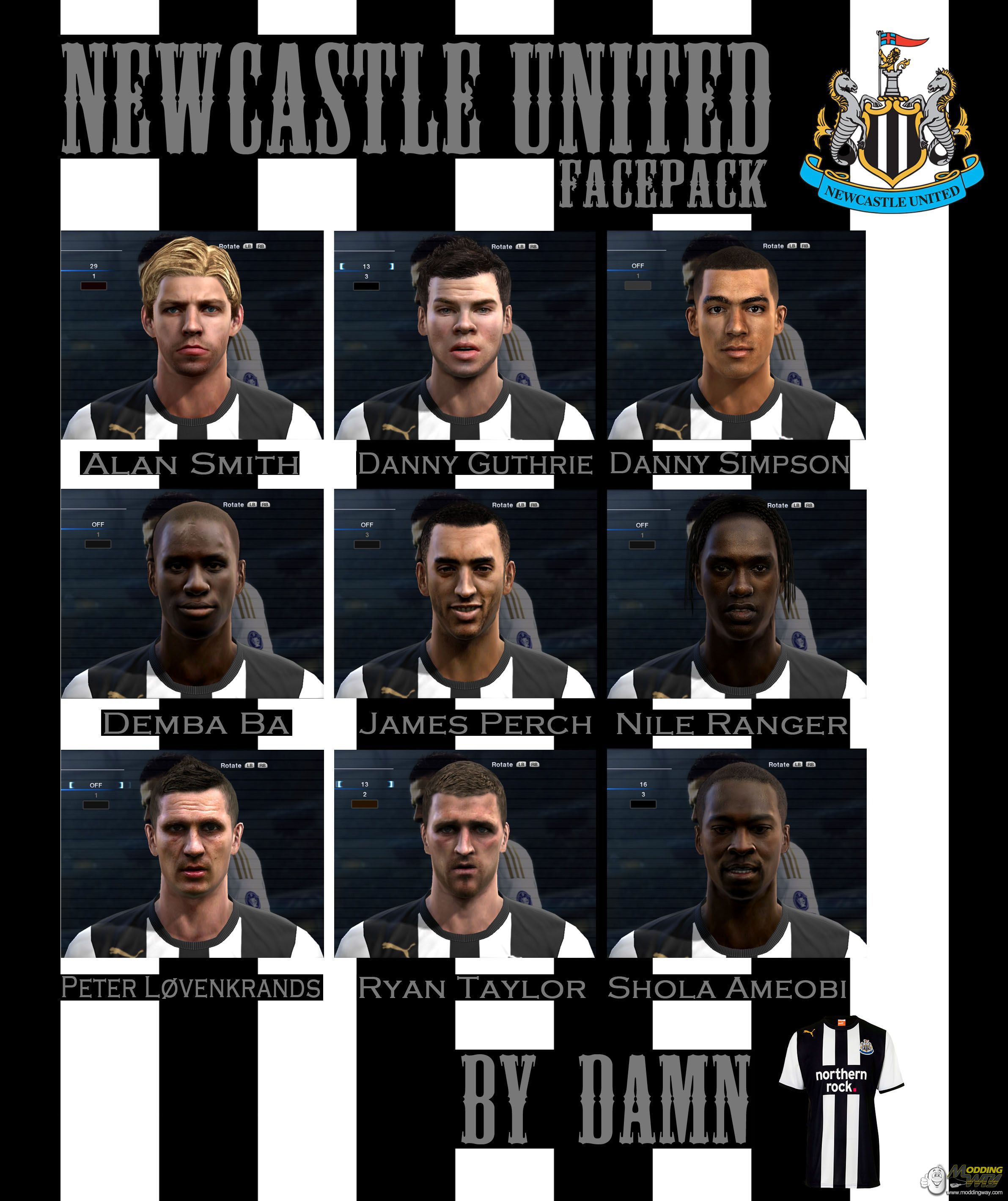 Download Newcastle Faces Pack. This is a mod for Pro Evolution Soccer 2012 video game.