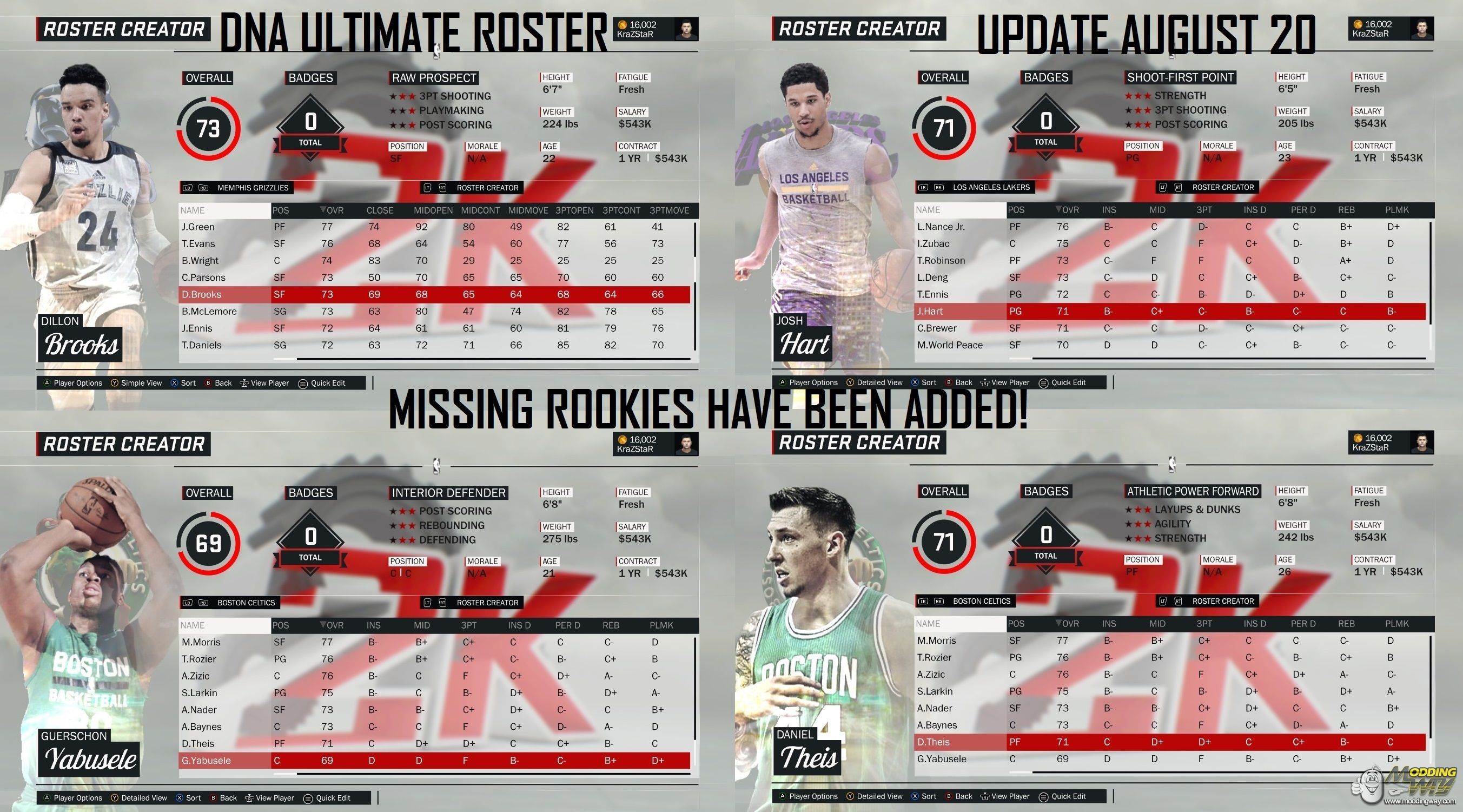 Download DNA Ultimate Roster 17-18 UPDATE AUGUST 20 - MISSING ROOKIES ADDED. This is a mod for NBA 2K17 video game.