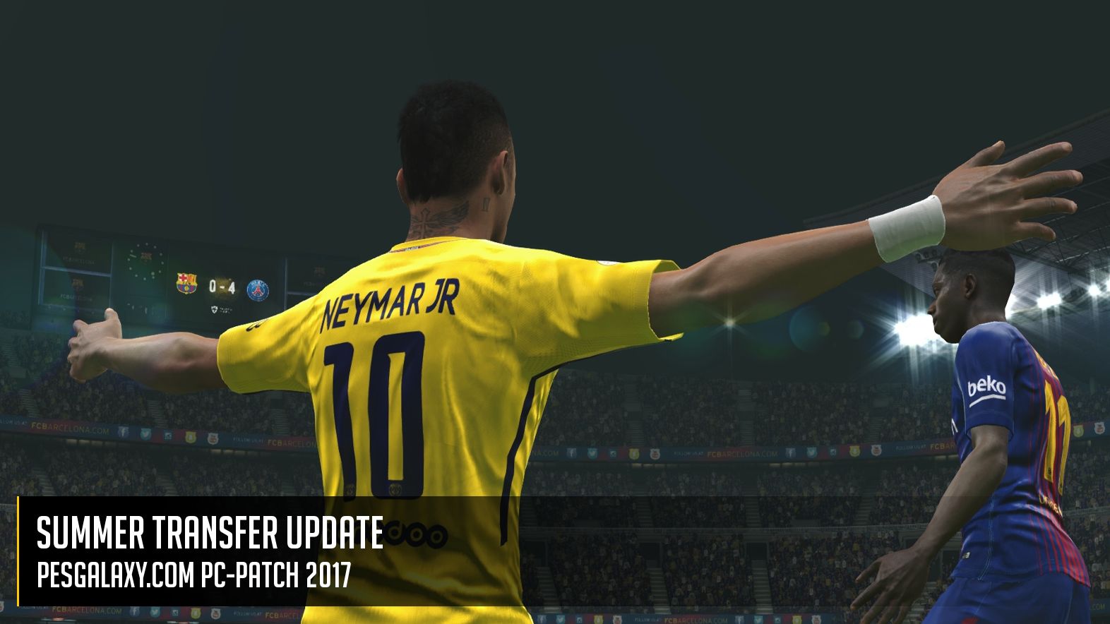 Pesgalaxy.com Patch 2017 4.00 FEATURES- Summertransfers for many teams *- Many new 17/18 kits- Stat updates across all leagues- Updated logos- 12 new teams (Bröndby, Galatasaray, Genk, Krasnodar, Malmö, Pilsen, Glasgow Rangers, Rosenborg, Sparta Praha, Spartak, Steaua, Young Boys)- Many new faces added GENERAL FEATURES- All fake teams corrected with correct names and logos- Full Bundesliga with correct Kits and squad added- The 5 missing CL Teams (Rostov, Copenhagen, Celtic, Ludogorets, Legia) with correct Kits and squad added- 9 new european teams added (Shakhtar, Zenit, Rapid, RB Salzburg, Fenerbahce, Olympiacos, Panathinaikos, PAOK, Anderlecht)- Complete Liga Bancomer MX with correct Kits and squad added (Thanks to Team PES MX)- 2. Bundesliga teams plus Lotte, Duisburg, Osnabrück and Halle available via switch- Full Bundesliga ML playable- New 16/17 kits for all european teams and all national teams- Many new third kits added- About 1400 new or updated faces added- Fake players in Brasileiro Série A corrected and transfers updated- Correct international starters- New switch (Gameplay switch, Faces switch, Controller switch, SweetFX switch, Visual packs switch, DPFilelist editor completely reworked)- Stadium pack added (40 stadiums in total)- Ballpack added- Adboardpack added- Minifaces by 1002MB added- Fake players of the national teams corrected Patchteam:Hajnal30Borusse92Volun