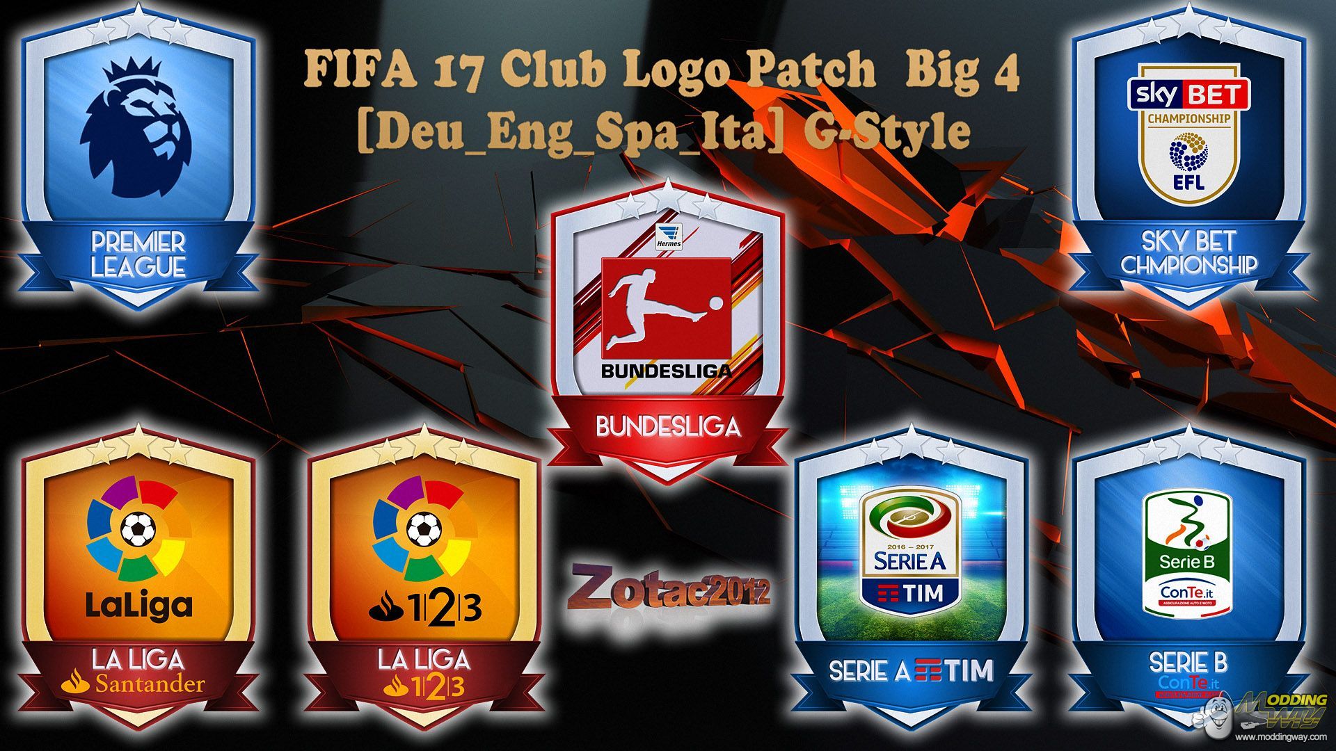 INSTALLATION1)EXTRACT THE RAR TO MODS FOLDER IN FROSTY MOD MANAGER2)OPEN FROSTY MOD MANAGER AND SELECT "FIFA 17 Club Logo Patch Big 4 [Deu_Eng_Spa_Ita] G-Style" AND APPLY IT !