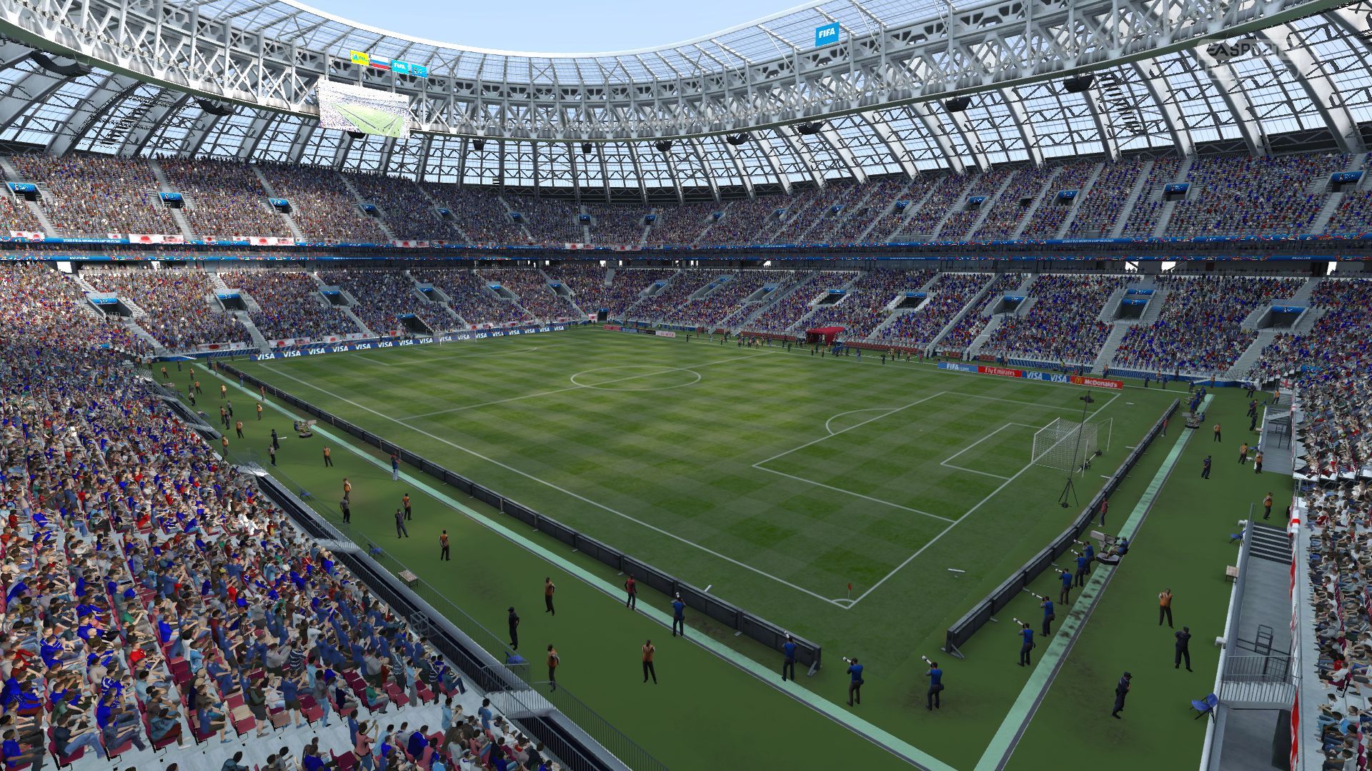 - World Cup Database including all 32 teams + Austria, Czech Republic, Albania, Montenegro, Slovenia, Slovakia, Bulgaria, Finland, Estonia, Greece, Italy, Norway, Ireland, North Ireland, Turkey, Ukraine, Wales, Ecuador, Paraguay, Cameroon, Bosnia & Herzegovina, Ivory Coast, Northern Ireland, Chile, Algeria. - Updated kits for all teams included in the database - Luzhniki Stadium ( converted from FIFA 18 ) - Adboards, stadium dress, pedestal,menus all of them related to FIFA World Cup - New Soundtrack - New Scoreboard ( real one from FIFA World Cup )