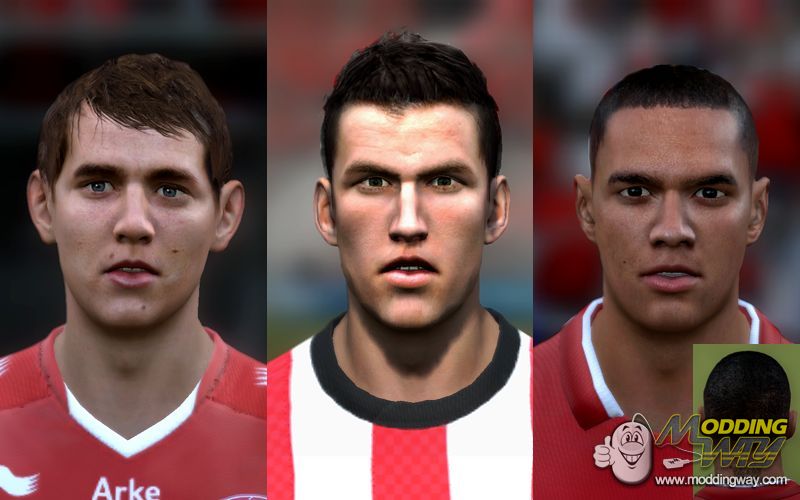 This pack includes the following faces; - Luuk de Jong (FC TWENTE) - Strootman (PSV EINDHOVEN) - van der Wiel (AJAX AMSTERDAM) For installing these faces, use Creation Master 12 (latest version by Rinaldo). Thanks for downloading this pack and enjoy the game, Cheers, FV.Luces!