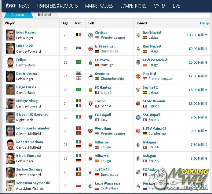 Last transfers are taken into account.
