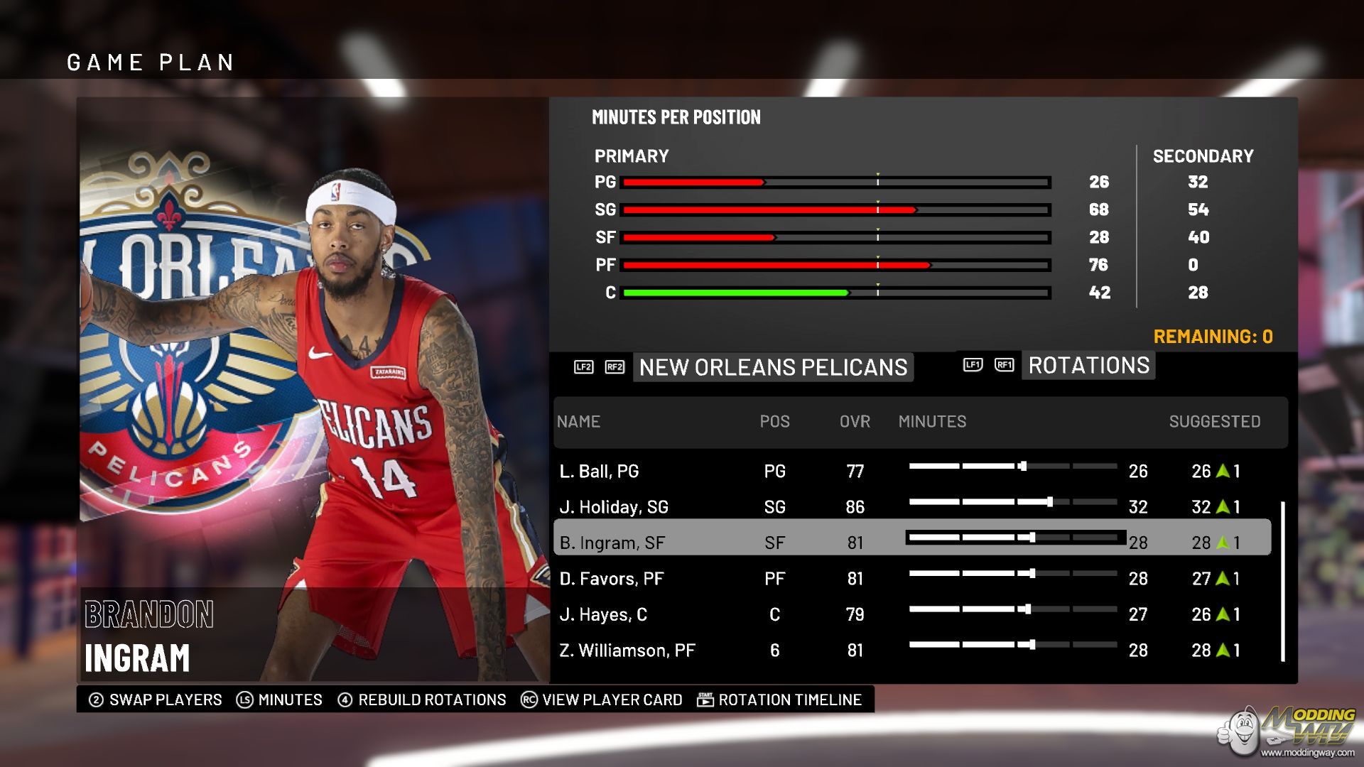 Download Ingram Pelicans Portrait. This is a mod for NBA 2K19 video game.