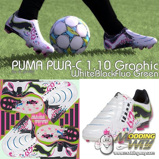 Download PUMA PWR-C 1.10 Graphic White Black Fluo Green. This is a mod for FIFA 12 video game.