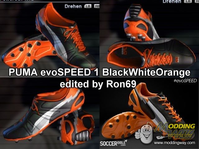 Download PUMA evoSPEED 1 Black/White/Orange edited. This is a mod for Pro Evolution Soccer 2012 video game.