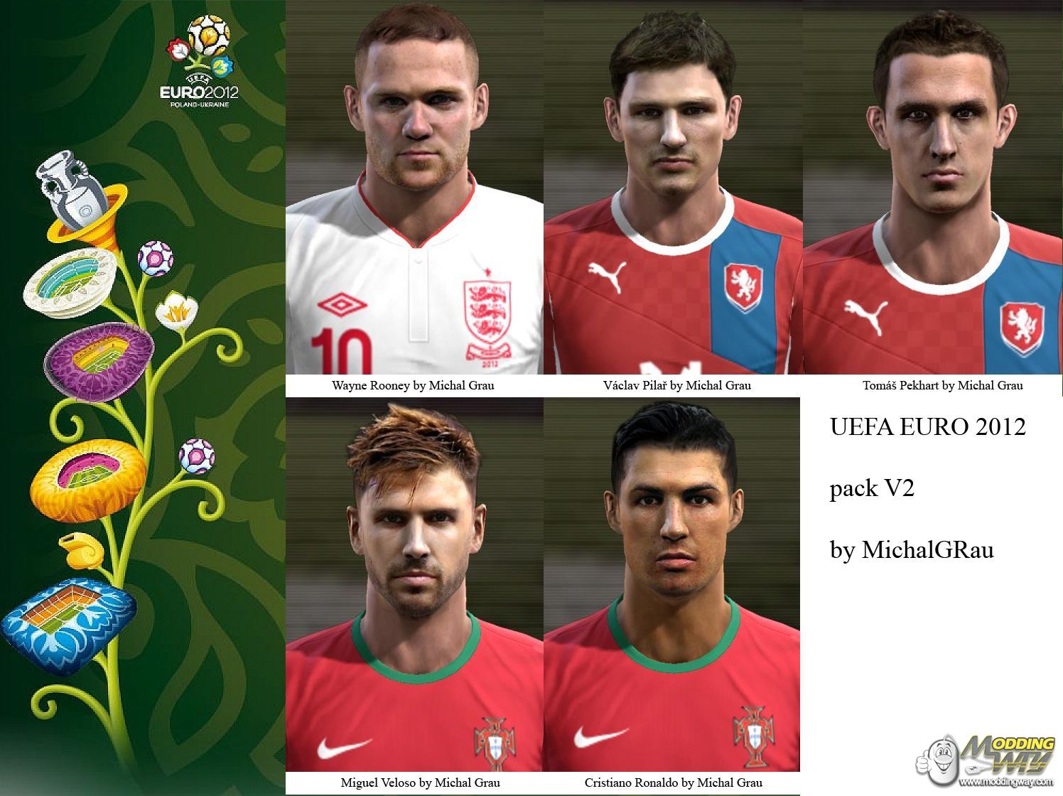 Download UEFA Euro Faces Pack V2. This is a mod for Pro Evolution Soccer 2012 video game.