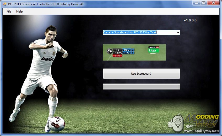 PES 2013 Scoreboard Selector v1.0.0.0 Beta by Demo AFFeatures:1.Choose between 5 scoreboards2.The settings of the tool are saved after you use the toolChangelog:-First Release