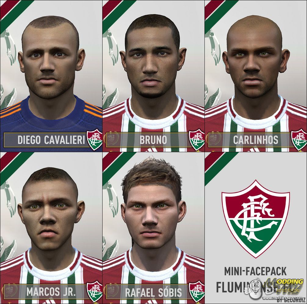 Fluminense FC (Brazil) mini-facepack including the goalkeeper Diego Cavalieri, the right back Bruno, the left back Carlinhos and the reserves forwards Rafael Sóbis and Marcos Júnior. Enjoy!