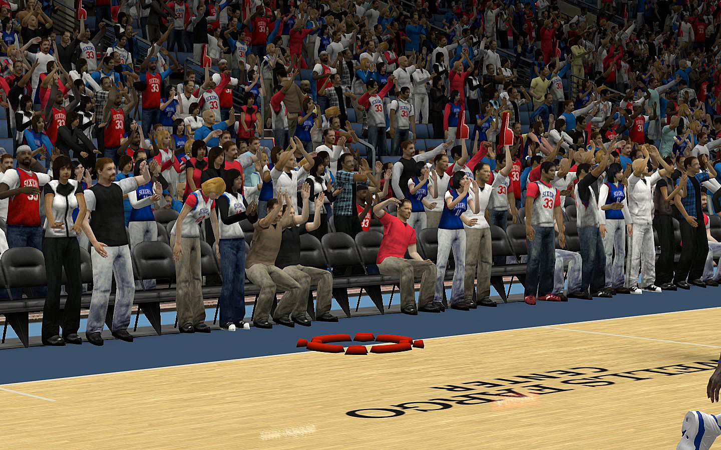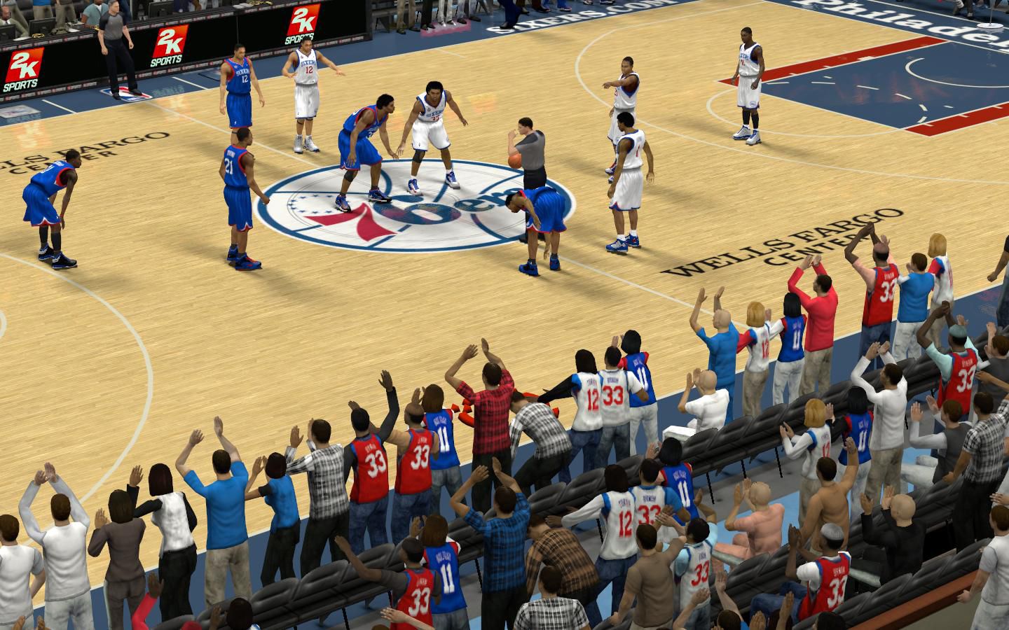 NOTE: Use my Jersey Roster (http://forums.nba-live.com/downloads.php?view=detail&df_id=3853) to have alternate shown in game.- Includes: Alternate, Away, Home, and Winter- All new REV30 mesh holes, smaller and detailed.- Remade SIXERS script and 50 year patch, fixed the size and position- Fixed the number texture, size, color and position- Detailed logos- Realistic warmupsBack up your files in case you don't like it, so that you can return to the old one.Credits: TneckDME's crowd as a base.permissions? problems? helps? favors? requests? thanks? go here http://forums.nba-live.com/viewtopic.php?f=149&t=88423