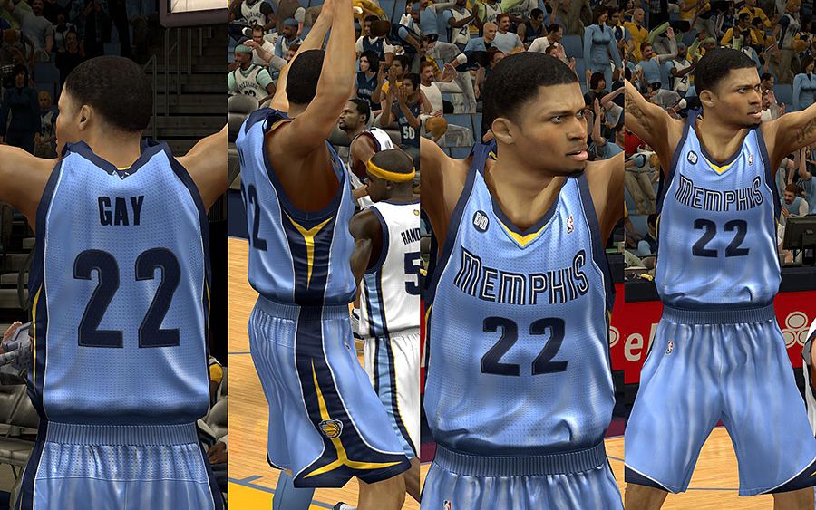 This updates the jerseys for the Memphis Grizzlies and the Warmups, along with a crowd fix.Includes:- Alternate, Home, & Away- All new REV30 mesh holes, smaller and detailed.- Remade GRIZZLIES, & MEMPHIS script. also the Numbers.- Fixed the distribution of lines on the side.- Fixed the number texture, size, color and position- Detailed logos- Realistic warmupsNOTE: Use my Jersey Roster (http://forums.nba-live.com/downloads.php?view=detail&df_id=3853) for best result.Back up your files in case you don't like it, so that you can return to the old one.Credits: TNeckDME's crowd as a base.Permission? Problems? Help? Favors? Requests? Thanks? Go here: http://forums.nba-live.com/viewtopic.php?f=149&t=88423