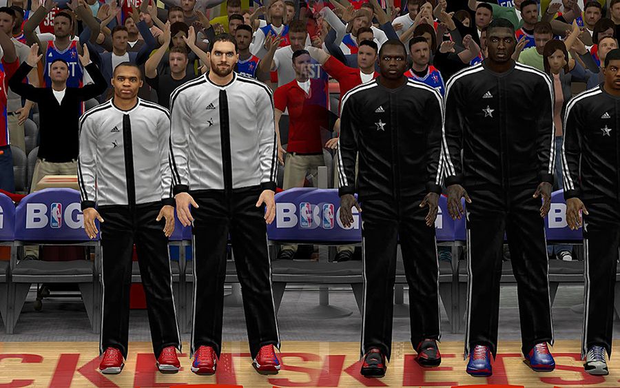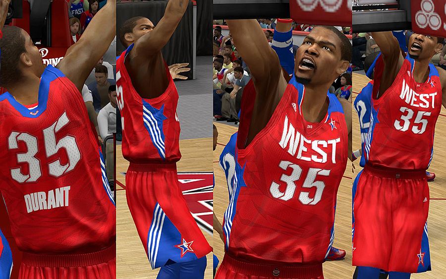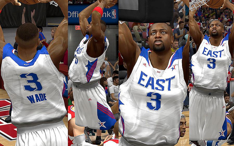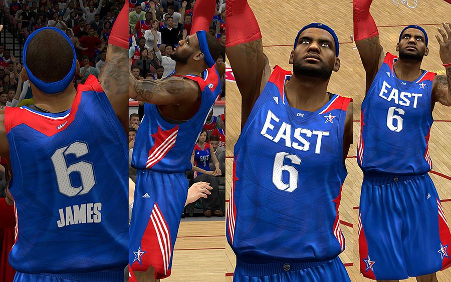 Includes:- East, West, East Home(Fictional), West Home(Fictional)- All new REV30 mesh holes, smaller and detailed.- Remade EAST, & WEST script, as well as the numbers.- Fixed the number texture, size, color and position- Detailed logos- Realistic warmupsBack up your files in case you don't like it, so that you can return to the old one.Permission? Problems? Help? Favors? Requests? Thanks? Go here: http://forums.nba-live.com/viewtopic.php?f=149&t=88423&p=1588739