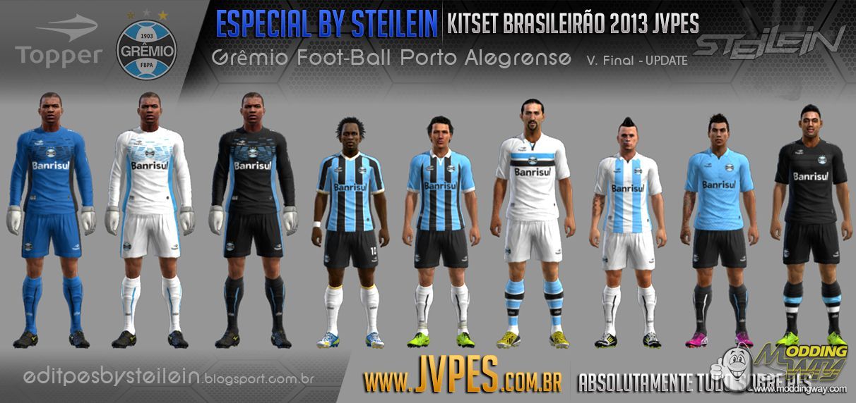 Download Kitset Grêmio 2013 - Especial Brasileirão JVPES. This is a mod for Pro Evolution Soccer 2013 video game.