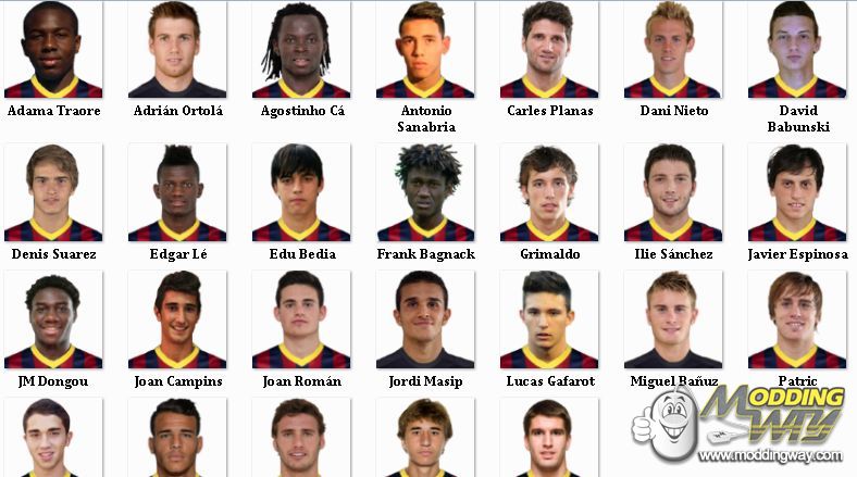 Here are Barcelona B 13/14 squad minifaces custom made be me. To install use CM13 to change the pictures. Some players may not be in the game and so can't be used until FIFA14 is out when you should be able to use all faces :)