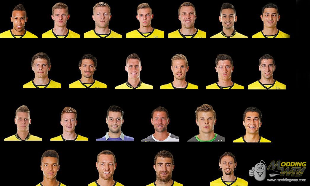I am very sorry, because I finished very late in this week but I had promised a fast release :( and the minifaces aren't so good as I expected. And: Gündogan, Piszcek, Kehl weren't at the fotoshooting so they have the faces from 2012/2013.