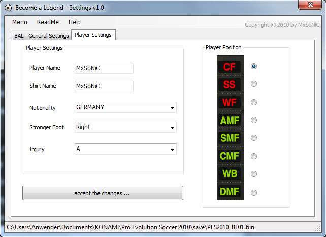 PES 2010 Become a Legend - Settings v1.4