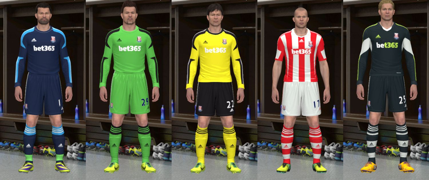 Download Stoke City 13/14 Kit Set Update 2. This is a mod for Pro Evolution Soccer 2014 video game.