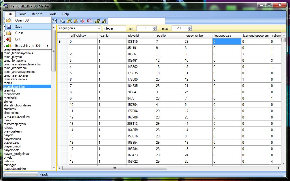 1 -. Downloading and extracting files. 2 - select the database 4.0 of moddingway selector. 3 - open fifa 14 db master (if you have to download and install) open the database of fifa 14 Search and Select teamplayerlinksgo to the Table menu and give selecionan Import Single select teamplayerlinks downloaded files that give so do savefiles do the same with the other files.