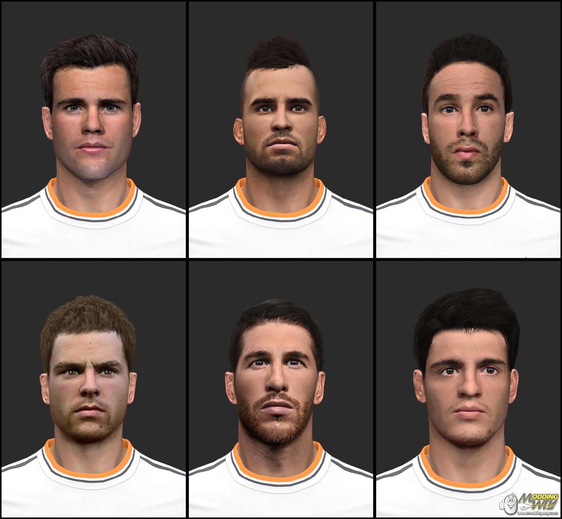 Real Madrid Facepack vol1 by tunizizouNacho FernandezJese RodriguezDaniel CarvajalAsier IllarramendiSergio RamosAlvaro MorataCopy folders to pes14_win_datcommoncharacter0modelcharacterfa ce ealand edit head/neck settings in game