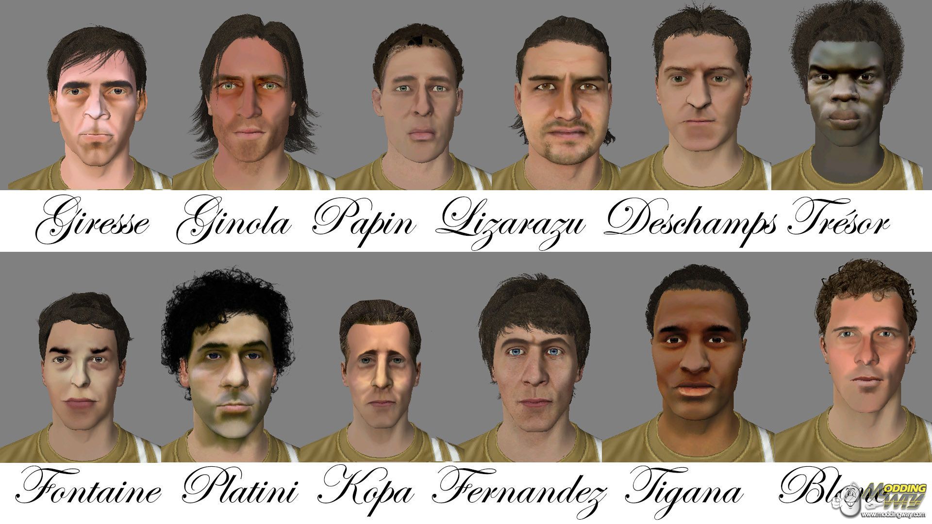 Platini, Ginola, Papin, Kopa, Fontaine, Giresse, Fernandez, Tigana, Lizarazu, Blanc, Deschamps and Tresor.