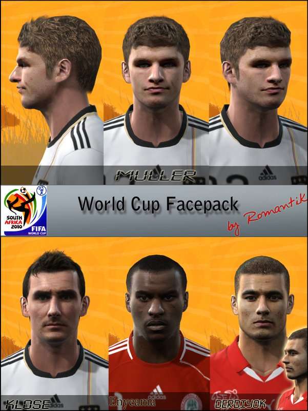 Download World Cup Faces Pack. This is a mod for Pro Evolution Soccer 2010 video game.
