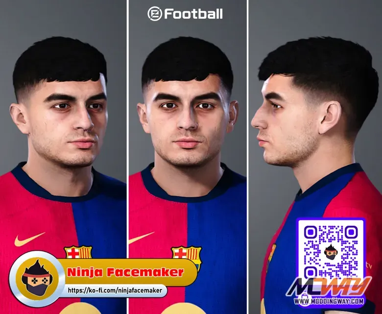 This mod recreates Pedri’s youthful and determined look as FC Barcelona’s midfield prodigy. His facial features are carefully sculpted to reflect his sharp eyes, defined cheekbones, and natural hairstyle, capturing the intensity and focus he shows on the pitch. The model balances realism with subtle detail, ensuring his expressions feel authentic during gameplay. As one of Spain’s brightest talents, this face file enhances immersion and brings fans closer to the rising star of Barcelona and La Roja.